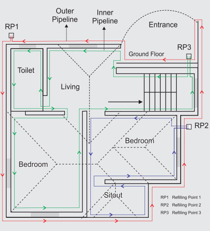 Termiticide Distribution System is a unique concept in the area of pest control for control of termites, successfully developed by us and a very cost effective infrastructure installation for the permanent solution for termite in upcoming building on preconstruction stage.